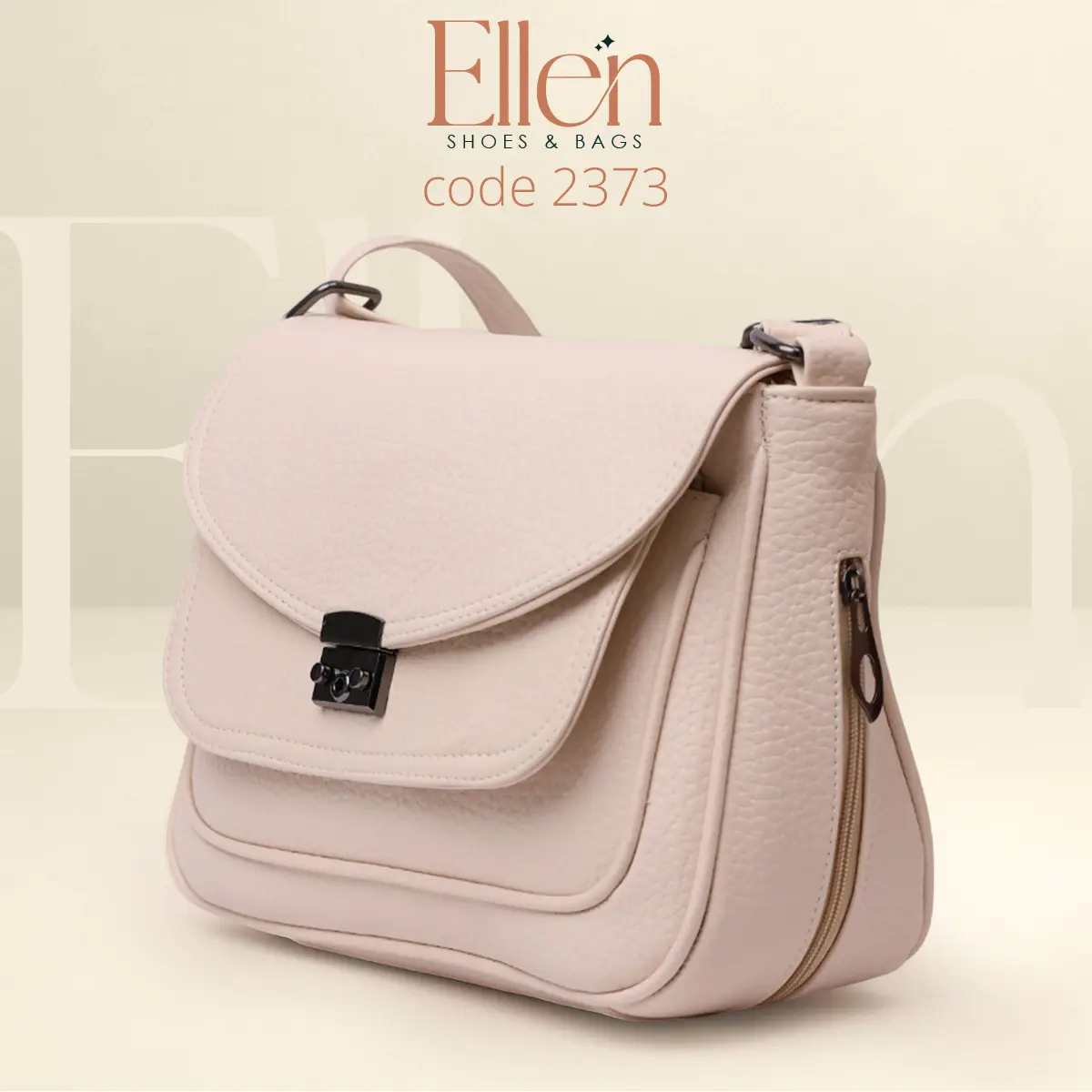 شنطة كروس أنيقة بغطاء وقفل معدني ولمسة جلد محبّب – كود 2373