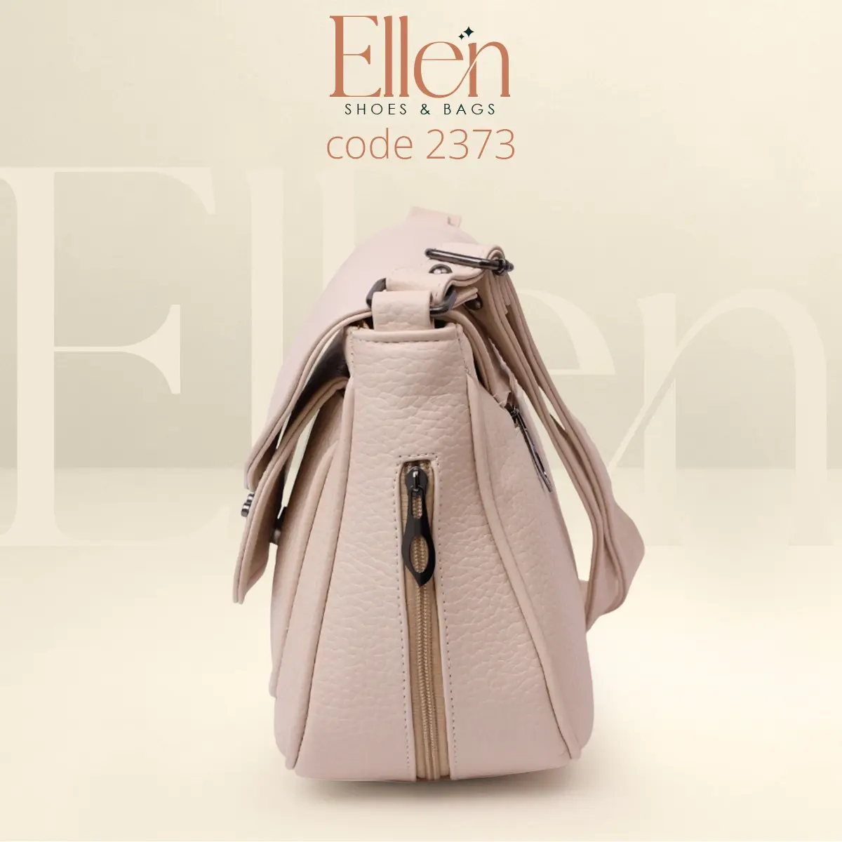 شنطة هوبو من Ellen – موديل 2490، بتصميم هلالي ناعم، مصنوعة من جلد محبب مقاوم للخدوش. متوفرة بألوان أنيقة ومتنوعة تناسب كل إطلالاتك اليومية، وجيبين رئيسيين بالسحابات وجيب خلفي.